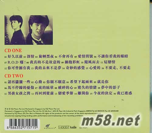 CD ONE 01. 好久以前 02. 深情 03. 旋轉黑夜 04. 不會再有 05. 愛情問號 06. 不讓你看我的眼睛 07. R.O.D.啰! 08. 我真的不是故意的 09. 擁抱彩虹 10. 隨風而去 11. 這戀情 12. 你可曾擁有我 13. 我的未來不是夢 14. 奇妙的感覺 15. 心愛的 16. 不要走 不要走 CD TWO 01. 請再瀟灑一些 02. 心動 03. 你愿不愿意 04. 希望下起雨來 05. 就是你 06. 馬不停蹄的憂傷 07. 夜的眩暈 08. 破碎的心 09. 迷失的情緒 10. 夢中的影子 11. 男孩女孩之間 12. 再回到從前 13. 戀愛季節 14. 離開你 15. 今夜的決定 16. 我已迷惑