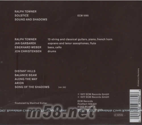 自七十年代中期以來,德國ECM保持著每年大約二十張唱片的出品,并且一直致力于開創新音樂及發掘富有創意的音樂家,在三十來年中網羅了眾多風格獨特全面的樂手。而這些不同背景的樂手,在相互理解與融合音樂風格的交往中,產生了一些成功的演奏組合,所錄制的專輯也因創新的意念,而成為公司的經典。美國吉它手Ralph Towner聯同Jan Garbarek、Jon Christensen及Eberhard Weber合奏的“Solstice”,就是74年錄音的。