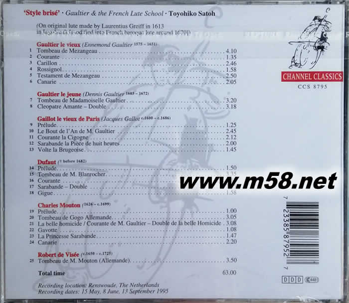 比尤埃拉琴系列第五集 TOYOHIKO SATOH 5 STYLE BRISE GARLTIER & THE FRENCH LUTE SCHOOL 西班牙琵琶(m58.net)