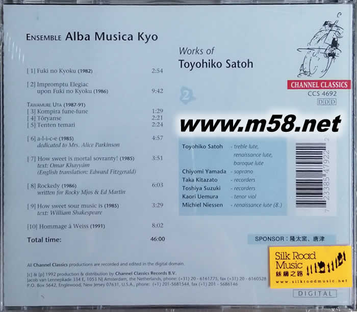 比尤埃拉琴 (藍色封面2)TOYOHIKO SATOH ENSEMBLE ALBA MUSICA KYO 西班牙琵琶專輯背面圖片