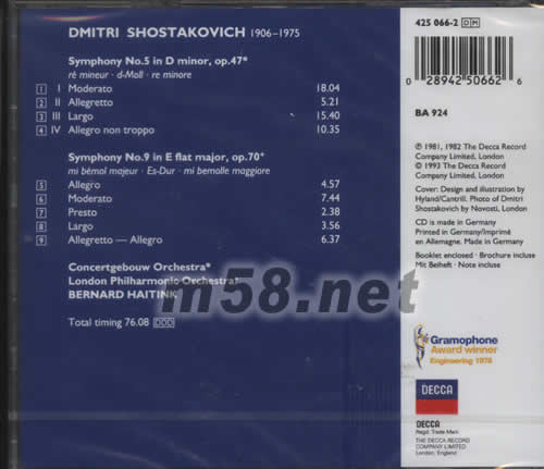 SHOSTAKOVICH蕭斯塔科維奇第5&9交響曲專輯背面圖片