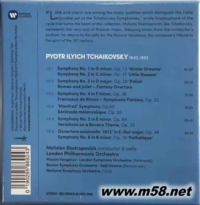 Tchaikovsky: Symphonies 1-6 世紀典藏超值盒 柴可夫斯基:六首交響曲、管弦樂曲 6CD 套裝專輯背面圖片