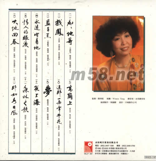 01. 癡癡地等 02. 戲鳳 03. 藍與黑 04. 永遠守著他 05. 情人的眼淚 06. 大地回春 07. 高崗上 08. 送郎一朵牽牛花 09. 夢 10. 夜上海 11. 森林之歌 12. 郎如春日風