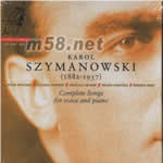 CD1 1-6 Szesc piesni-Six Songs(K.Tetmajer)op.2 7-9 Trzy fragmenty Z poematow Jana Kasprowicza-Three Fragments from Poems by Jan Kasprowicz op.5 10 Labedz-The Swan(Berent)op.7 11-14 Cztery piesni-Four Songs(Micinski) op.II 15-17 Piosenki Zolnierskie-Soldiers's Songs 18 Idom se siuhaje dolu,spiewajecy-Young highlanders descend,singing 19-23 Funf Gesange-Five Songs(Dehmel,Des Knaben Wunderhorn,Bodenstedt,Bierbaum) op.13 24-26 Trzy piesni-Three Songs(D.Dawydov)op.32 CD2 1-5 Bunte Lieder-Colourful Songs(Bulcke,Paquet,Faktor,Ritter,Huch) op.22 6-11 Piesni muezina szalonego-Songs of the Infatuated Muezzin(Iwaszkiewicz)op.42 12-18 Seven Songs(James Joyce)op.54 19-30 Piesni Kurpiowski-Kurpian Songs op.58 31 Dans les pres fleuris-In the flowering meadows CD3 1-6 Szesc piesni-Six Songs(Micinski) op.20 7-12 Des Hafis Liebeslieder-Love Songs of Hafis(Bethge) op.24 13 Das Grab des Hafis-(Bethge)OP.posth. 14-17 Vier Gesange-Four Songs (Taore) op.4I 18-29 Zwolf Lieder-Twelve Songs (Dehmel,Mombert,Falke,Greif) Op.17 CD4 1-6 Piesni ksiezniczki z basni-Songs of the Fairy Princess(Z.Szymanowska) Op.3I 7-11 Slopiewnie-Slopiewnie(Tuwim) Op.46 bis 12-14 Trzy kolysanki-Three Lullabies(Iwaszkiewicz) op.48 15-34 Rymy dzieciece-Children's Rhymes(Illakowicz) op.49 35 Vocalise-Erude 36 Samotny ksiezyc-Lonely moon op.3I nr I(A)