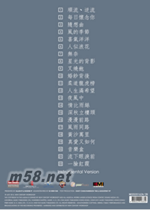 1. 順流、逆流 2. 每日懷念你 3. 隨想曲 4. 風的季節 5. 喜氣洋洋 6. 人似浪花 7. 無奈 8. 星光的背影 9. 叉燒飽 10. 婚紗背后 11. 柔道龍虎榜 12. 人生滿希望 13. 夜風中 14. 情比雨絲 15. 深秋立樓頭 16. 漫漫前路 17. 風雨同路 18. 黃沙萬里 19. 真愛又如何 20. 音樂盒 21. 流下眼淚前 22. 一臉紅霞