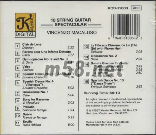10弦吉它TEN STRING GUITAR SPECTACULAR專輯背面圖片
