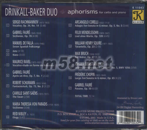大提琴與鋼琴的格言DRINKALL BAKER DUO APHORISMS FOR CELLO AND PIANO專輯背面圖片