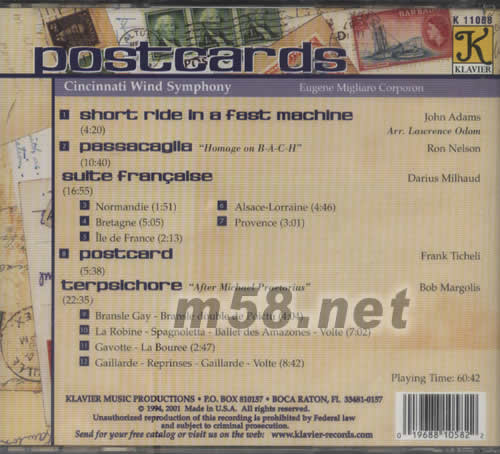 1.SHORT RLDE IN A FAST MACHINE 2.PASSACAGLLA HOMAGE ON B-A-C-H SUITE FRANCALSE 3.NORMANDIE 4.BRETAGNE 5.LIE DE FRANCE 6.ALSACE-LORRAINE 7.PROVENCE 8.POSTCARD TERPSLCHORE AFTER MICHAEL PRAETORIUS 9.BRANSLE GAY-BRANSLE DOUBLE DE POICTU 10.LA ROBINE -SPAGNOLETTA-BALLET DES AMAZONES-VOITE 11.GAVOTTE-LA BOURE 12.GAILLARDE-REPRINSES-GAILLARDE-VOITE