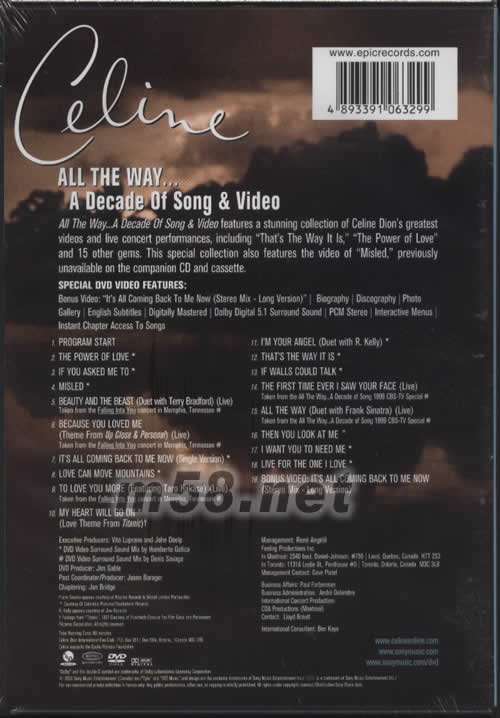 ALL THE WAY A DECADE OF SONG VIDEO DVD(加拿大版)專輯背面圖片