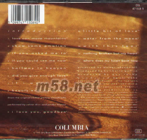 CELINE DION 同名專輯 愛可移山專輯背面圖片