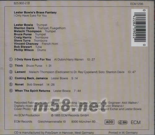 LESTER BOWIE STANTON DAVIS MALACHI THOMPSON BRUCE PURSE CRAIG HARRIS STEVE TURRE VINCENT CHANCEY BOB STEWART PHILLIP WILSON 1.L ONLY HAVE EYES FOR YOU 2.THEINK 3.LAMENT 4.COMING BACK ,JAMAICA 5.NINET 6.WHEN THE SPIRIT RETURNS