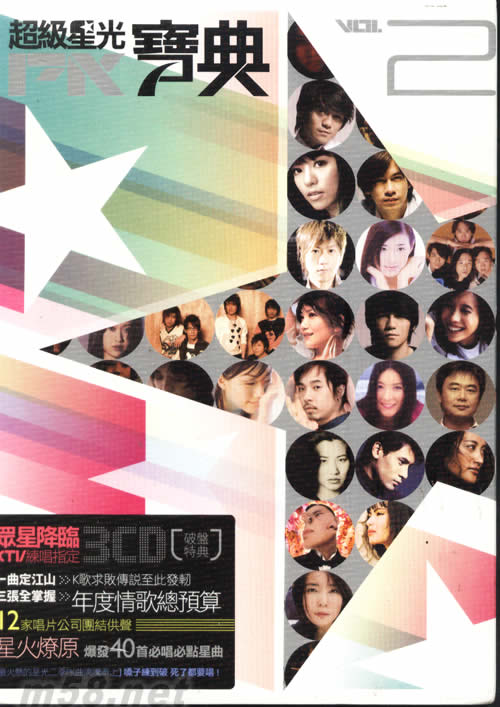 超級星光寶典2(m58.net) 超級星光PK寶典2 眾星降臨 KTV練唱指定 一曲定江山,K歌求敗傳說至此發軔 一張專輯掌握07-08年度情歌總預算 12家唱片公司團結供聲 星火燎原 爆發40首K歌必唱 KTV必點金曲 最火熱的星光二季PK曲沸騰奉上 嗓子練到破,死了都要唱!!