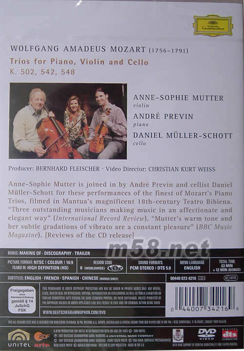 VOILIN WOLFGANG AMADEUS MOZART莫扎特大小提琴與鋼琴三重奏演奏會DVD(m58.net)
