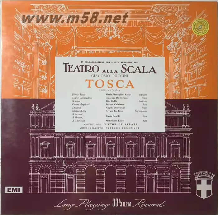 普契尼在文藝風的《波西米亞人》之后,1900年推出這齣血腥暴力的《托絲卡》,可說是義大利寫實歌劇最淋漓盡致的代表作。故事描述美艷歌星托絲卡與畫家卡瓦拉多西相戀,卻因邪惡的警察總監史卡匹亞為了她的垂涎美色,導致三個主角最后全都斃命。儘管自首演一百多年來有無數女高音扮演過托絲卡,但沒有一位能夠像卡拉絲這般扣人心弦,即使僅透過唱片來聆賞,尤其第二幕的逼供場景,卡拉絲用歌聲傳遞出如許豐沛的情感,每一個樂音都強烈撞擊聽者的心胸,彷彿親眼目睹托絲卡的悲劇。