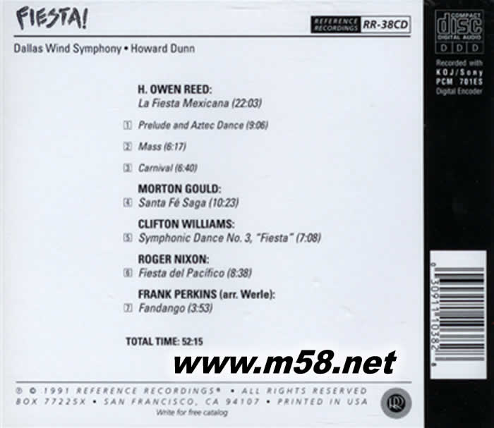 01 - Howard Dunn - Dallas Wind Symphony - REED - La Fiesta Mexicana - Prelude and Aztec Dance02 - Howard Dunn - Dallas Wind Symphony - REED - La Fiesta Mexicana - Mass03 - Howard Dunn - Dallas Wind Symphony - REED - La Fiesta Mexicana - Carnival04 - Howard Dunn - Dallas Wind Symphony - GOULD - Santa Fe Saga05 - Howard Dunn - Dallas Wind Symphony - WILLIAMS - Symphonic Dance No. 3, 'Fiesta'06 - Howard Dunn - Dallas Wind Symphony - NIXON - Fiesta del Pacifico07 - Howard Dunn - Dallas Wind Symphony - PERKINS - Fandango