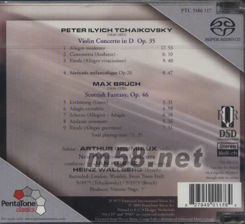 TCHAIKOVSKY老柴 小提琴協奏曲 BRUCH蘇格蘭協奏曲SACD專輯背面圖片