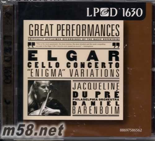 埃爾加 大提琴協奏曲杜普雷大提琴 LPCD1630(m58.net) 艾爾加: 大提琴協奏曲、威風凜凜進行曲、謎樣變奏曲 杜普蕾(大提琴)、巴倫波因(指揮)倫敦愛樂管弦樂團、費城管弦樂團 「杜普蕾在本專輯所演奏的這個艾爾加E小調大提琴協奏曲,所有曾灌錄過的唱片版本里最熱情、最激昂、最細膩、最無懈可擊的版本--留聲機雜志」 艾爾加E小調大提琴協奏曲可以說是大提琴家杜普蕾(1945-1987)招牌曲,沒有別的演奏家詮釋得像她一樣投入、杰出。她與鋼琴家兼指揮家身分的才子巴倫波因結婚后,便成為生活上與事業上默契絕佳的才子佳人,開始有系統地灌錄許多優異的室內樂作品。盡管早先幾年杜普蕾曾與指揮巴畢羅里爵士合作過一張「震爍古今」的艾爾加E小調大提琴協奏曲版本,但是夫妻倆覺得以她們目前的狀態,可以再超越過去的輝煌。1970年11月27-28日,擔任費城管弦樂團客座指揮的巴倫波因,在當地廣播電臺的邀約下,與杜普蕾重新合作灌錄此曲,事后聽過母帶之后,兩個人都滿意極了,簡直集天時、地利、人和,無怪乎留聲機雜志與企鵝唱片指南給它這么高的評價。專輯中另收錄了巴倫波因指揮艾爾加的弦樂作品,也非常值得一聽。