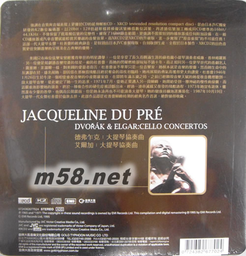 大提琴女杰 杜普蕾 大提琴協(xié)奏曲DVORAK & ELGAR CELLO CONCERTO XRCD(m58.net) 杜普蕾絕代經(jīng)典作品 日本JVC開發(fā)生產(chǎn) 巴比羅里指揮倫敦交響樂團