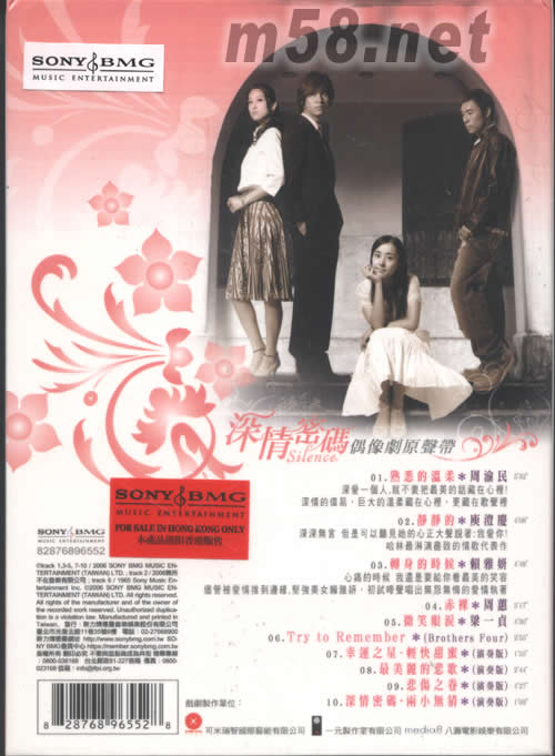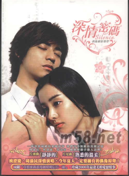 深情密碼-偶像劇原聲帶(m58.net) 內(nèi)附【真情密碼浪漫劇照明信片一組】珍藏2006年最凄美的愛戀情事 一場深情糾纏的愛戀故事 我們青春無敵的美麗記憶 周渝民,樸恩惠,許志安,賴雅妍 聯(lián)手動人詮釋! 片頭曲【靜靜的】,片尾曲【熟悉的溫柔】庾澄慶,周渝民深情演唱,今年夏天一定要擁有的偶像原聲!