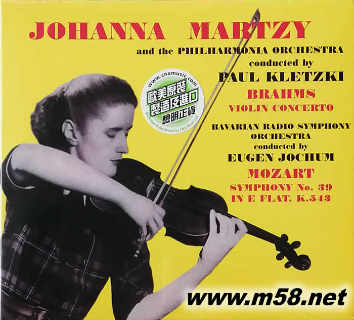 大名鼎鼎,更是部分資深樂迷稱為大師之大師,原籍波蘭之克萊茨基 (Paul Kletzki)指揮Philharmonia Orchestra。再加上音樂藝術生涯長達半個世紀之德國籍約夫姆(Eugen Juchum)指揮Bavarian Radio Symphony Orchestra)巴伐利亞廣播交響樂團,天賦藝術小提琴家瑪茨(Johanna Martzy)之精湛演出,琴音顫動誘人,音調精確無誤,布拉姆斯(Brahms)小提琴協奏曲當中管弦樂隊突然爆發,夢幻的段落演變,小提琴獨奏部分以突擊角度進入,一波蕩盪和火熱的演奏后,以一個愉快的獨奏小提琴完成。樂曲對獨奏者強大的技術要求,大量使用多個短暫停止及斷弦,快速的段落和節奏之變化,瑪茨(Johanna Martzy)近乎完美地一一完成。