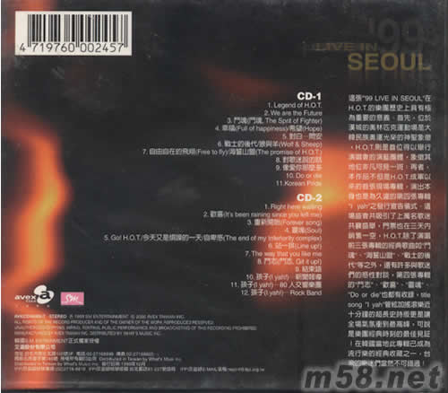 99 LIVE IN SEOUL 9/18漢城奧林匹克熱力實錄專輯背面圖片