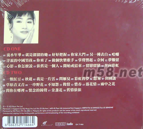 CD ONE 01. 流水年華 02. 就是溜溜的她 03. 好好把握 04. 你家大門 05. 另一種表白 06. 哈羅 07. 洋派的中國男孩 08. 你來了 09. 做個快樂歌手 10. 掌聲響起 11. 奈何 12. 夢難留 13. 心影 14. 你怎么說 15. 依舊是一個人 16. 開始或結束 17. 留戀留戀 18. 奔向彩虹 CD TWO 01. 一顆紅豆 02. 秋蓮 03. 我是一片云 04. 問雁兒 05. 彩虹的夢 06. 想家 07. 田園謠 08. 草原青又青 09. 一串野花 10. 不知怨 11. 挽情 12. 惜春 13. 落花情 14. 雨中之花 15. 問你在哪里 16. 懷念的鐘聲 17. 金盞花 18. 舊情依依