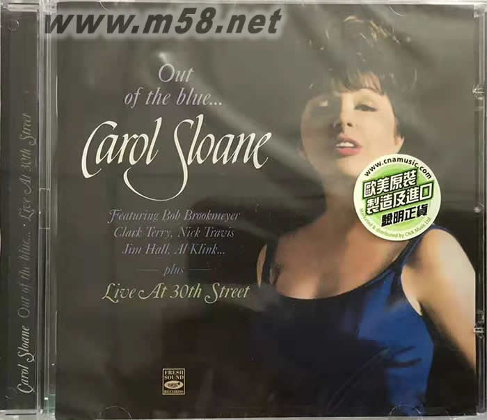 Out of the blue(m58.net) 美國爵士歌手Carol Sloane (斯隆)從14歲起,已經開始她的歌唱事業,作為一個年輕的歌手,在她24歲時已獲得Columbia Records (哥倫比亞唱片)垂青,簽約成為歌手,首張唱片在1962年發行,即是本專Out of the blue。她天生的才華和熱情奔放的音樂個性,出乎意料地成功吸引了觀眾目光。同年8月31日,她在Columbia Recording Studios, 207East 30th Street, 作出了一個十分成功的現場實況錄音,這個錄音從未對外作出發行,亦即是本專輯之Live at 30th street 兩張專輯都充分證明她如同一位閃耀之恆星,在爵士樂壇中一直地發放她的光芒,Hi Fi / Stereo / Mono,24-Bit Digitally Remastered,2LPs on 1CD。