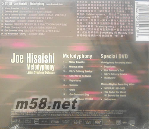為日本以及亞洲等首屈一指電影鉅作配樂的金獎音樂大師久石讓,集結(jié)樂迷所票選出的音樂 生涯人氣代表作,不僅自身親自鋼琴彈奏,并指揮世界最頂尖的倫敦交響樂團演奏出「舉世 聞名之久石樂章」,!為何將此精選輯命名為「Melodyphony」呢?其實這是結(jié)合Melody與 Symphony的造語,一直以來音樂大師與頂尖導演合作,因而激發(fā)出一篇又一篇令人激賞的配 樂作品,但配樂作品也受限于影像的長度,而今久石讓欲藉此輯「Melodyphony」,讓普羅大 眾能單純以音樂欣賞角度來聆聽一首首美好的旋律,沉浸在大師的琴音與Symphony的Melody 合諧奏鳴中,感受一場世紀音樂”響”宴。