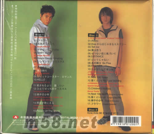 價格為估,以實到貨為準(zhǔn)! SUPER BEST(m58.net) 請點看產(chǎn)品正、背面大圖 本產(chǎn)品含有KINKI KIDS98年演唱會VCD