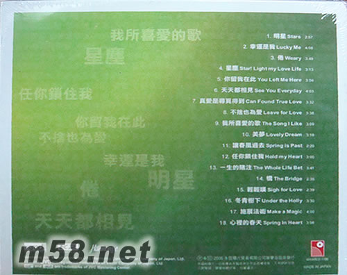 01. 明星 02. 幸運是我 03. 倦 04. 星塵 05. 你留我在此 06. 天天都相見 07. 真愛是尋覓得到 08. 不舍也為愛 09. 我所喜愛的歌 10. 美夢 11. 讓春風過去 12. 任你鎖住我 13. 一生的賭注 14. 橋 15. 輕輕嘆 16. 冬青樹下 17. 施展法術 18. 心里的春天
