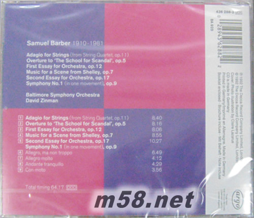 巴伯:柔版、第一交響曲BARBER ADAGIO SYMPHONY NO.1(m58.net)