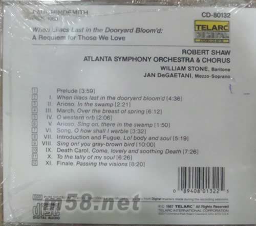 亨德密特:當紫丁香依然綻放Hindemith Requiem專輯背面圖片