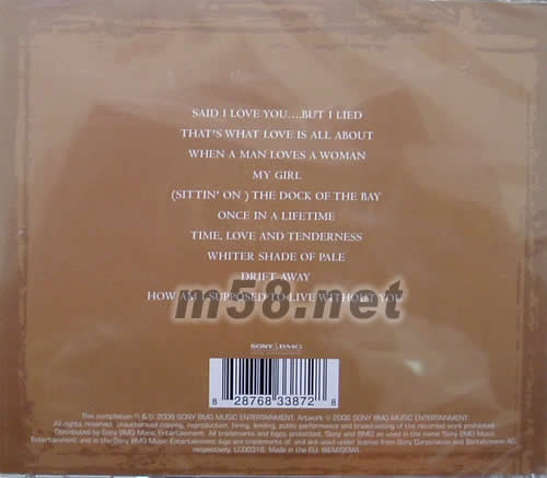 SAID I LOVE YOU ... BUT I LIED THAT'S WHAT LOVE IS ALL ABOUT WHEN A MAN LOVES A WOMAN MY GIRL (SITTIN 'ON )THE DOCK OF THE BAY ONCE IN A LIFETIME TIME LOVE AND TENDERNESS WHITER SHADE OF PALE DRIFT AWAY HOW AM I SUPPOSED TO LIVE WITHOUT YOU