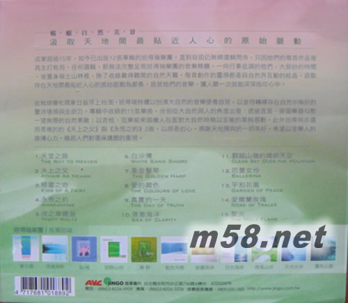 01. 天堂之路 THE WAY TO HEAVEN 02. 天上之父 ATHAIR AR NEAMH 03. 精靈之吻 KISS OF A FAIRY 04. 永恒之約 AMARANTINE 05. 夜之華爾滋 NIGHT WALTZ 06. 白沙灣 WHITE SAND SHORE 07. 黃金豎琴 THE GOLDEN HARP 08. 愛的顏色 THE COLOURS OF LOVE 09. 真實的一天 THE DAY OF TRUTH 10. 清澈海洋 SEA OF CLARITY 11. 翻越山嶺的晴朗天空 CLEAR SKY OVER THE MOUNTAIN 12. 芭蕾女伶 BALLERINA 13. 平和花園 GARDEN OF PEACE 14. 愛爾蘭玫瑰 ROSE OF TRALEE 15. 圣火 THE HOLY FLAME