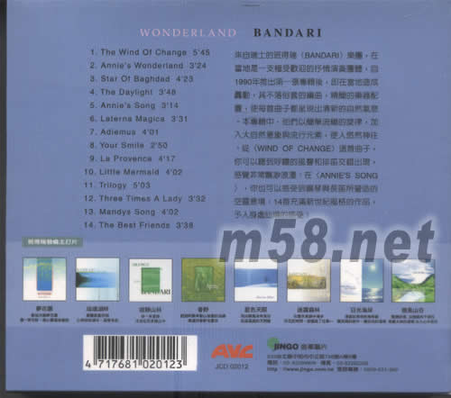 來自瑞士的班得瑞(BANDARI)樂團,在當地是一支極受歡迎的抒情演奏團體,自1990年推出第一張專輯后,即在當地造成轟動,其不落俗套的編曲,精簡的樂器配置,使每首曲子都呈現出清新的自然氣息。本專輯中,他們以簡單流暢的旋律,加入大自然意象與流行元素,使人悠然神往。從〈WIND OF CHANGE〉這首曲子,你可以聽到呼嘯的風聲和排笛交錯出現,感覺非常飄邈浪漫;在〈ANNIE’S SONG〉,你也可以感受到鋼琴與長笛所營造的空靈意境,14首充滿新世紀風格的作品,予人身處仙境的感受!