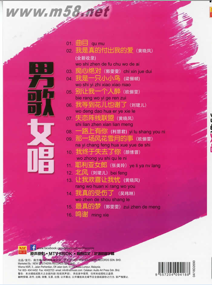 價格為估,以實(shí)到貨為準(zhǔn)! 男女對唱 DVD+CD(m58.net)