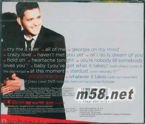 CD 01. Cry Me A River 02. All Of Me 03. Georgia On My Mind 04. Crazy Love 05. Haven't Met You Yet 06. All I Do Is Dream Of You 07. Hold On 08. Heartache Tonight 09. You're Nobody Till Somebody Loves You 10. Baby (You've Got What It Takes) 11. At This Moment 12. Stardust 13. Whatever It Takes (bonus track) DVD The Making Of Crazy Love