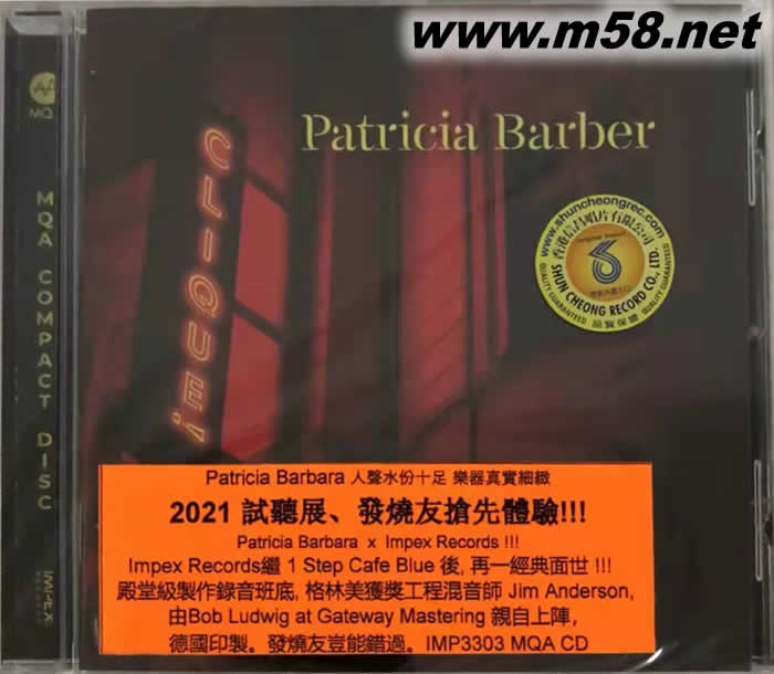 Patricia Barber Clique MQACD 限量版(m58.net) Patricia Barber與IMPEX公司合作的又一經典之作,殿堂級制作錄音班底,格萊美獲獎工程混音師上陣,2021試聽展推薦唱片。 Patricia Barber piano, vocals Jim Gailloreto saxophone Neal Alger guitar Patrick Mulcahy bass Jon Deitemyer drums Selections with Sound Samples