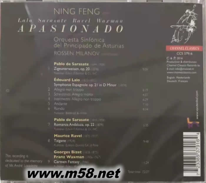 屢獲多項國際性大獎包括<2006年義大利熱那亞'帕格尼尼'國際小提琴大賽(International Violin Competition Paganini 2006)>首獎得主寧峰(Ning Feng)憑著精湛深厚的技術,每次演出往往令人讚嘆不已,他的名字早已揚威國際,是現今國際樂壇最活躍的音樂家之一。寧峰2016年首張專輯,聯同米蘭諾夫(Rossen Milanov) 指揮的”阿斯圖里阿斯公立交響樂團(Orquesta Sinfonica del Principado de Asturias)”為樂迷送上以下作品選:
