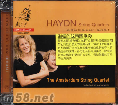 海頓的弦樂四重奏SACD(m58.net) 海頓的弦樂四重奏 最新加盟<經典頻道>的[阿姆斯特丹弦樂四重奏]醉心于歷史悠久的古典名曲,這次他們將作曲巨匠海頓的三首弦樂四重奏樂曲重新演奏.嫻熟合折的演繹,各方配合得極具美感,把海頓最富結構性的樂曲最次呈現,帶給您截然不同的古典美樂!