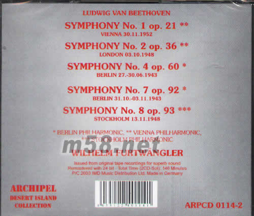 貝多芬交響曲子NO 1,2,4,7&8專輯背面圖片