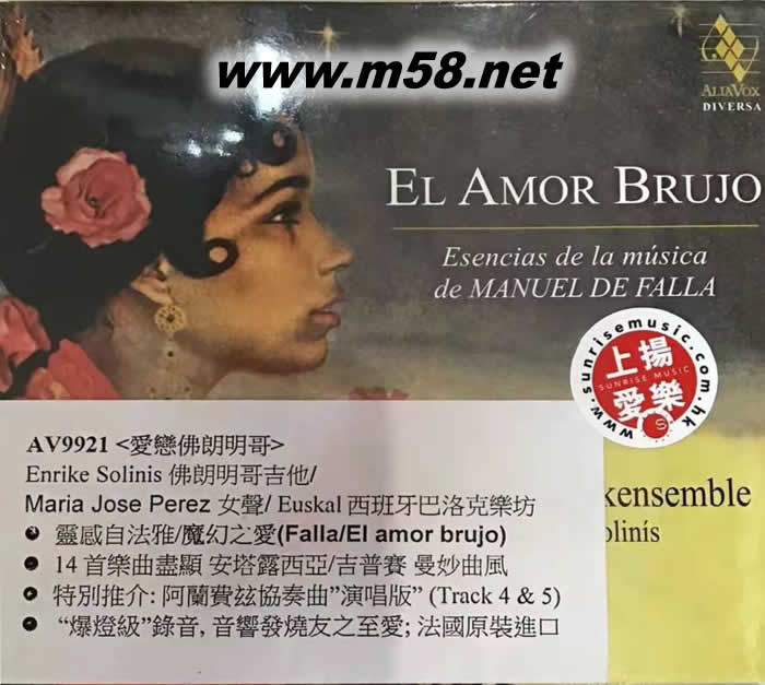 愛戀佛朗明哥De Falla: El Amor Brujo(m58.net) Enrike Solinis 佛朗明哥吉他/Maria Jose Perez 女聲/ Euskal西班牙巴洛克樂坊 靈感自法雅/魔幻之愛(Falla/El amor brujo) 14首樂曲盡顯 安塔露西亞/吉普賽 曼妙曲風(fēng) 特別推介: 阿蘭費玆協(xié)奏曲”演唱版” (Track 4 & 5) “爆燈級”錄音, 音響發(fā)燒友之至愛; 法國原裝進(jìn)口
