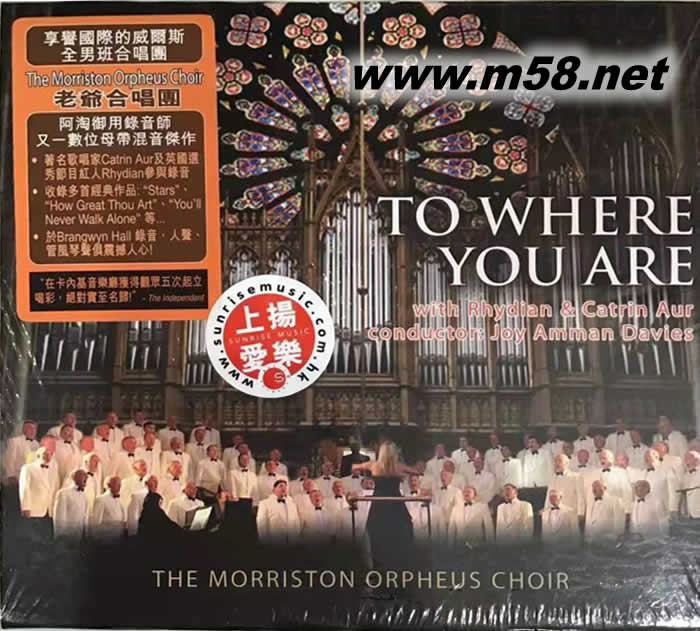 To Where You Are 老爺合唱團(tuán)THE MORRISTON ORPHEUS CHIOR(m58.net) 六屆英國(guó)皇家藝術(shù)節(jié)冠軍得主登陸香港 享譽(yù)國(guó)際的威爾斯全男班合唱團(tuán) 威爾斯Brangwyn Hall現(xiàn)場(chǎng)錄音,超凡管風(fēng)琴演繹,發(fā)燒程度直逼“黑教堂” 在卡內(nèi)基音樂廳獲得觀眾五次起立喝彩,絕對(duì)實(shí)至名歸!” ~ The Independent 收錄多首耳熟能詳合唱團(tuán)曲目,包括孤星淚曲目 – “Stars”,利物浦會(huì)歌 – “You’ll Never Walk Alone”等