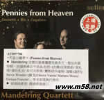 天堂小確幸 Pennies from Heaven Mandelring Quartett(小提琴、中提琴、大提琴)(m58.net) Manderling 弦樂四重奏團歷來最多元、雅俗共賞特輯,改編集錄古今名曲,包括: (古典)克萊斯勒/ 莫札特/ 德伏札克/ 柴可夫斯基/ 蕭斯塔科維契/ 海頓 (流行) Stevie Wonder/ (探戈) Héctor Varela/ Mariano Mores/ Enrique Francini …等名家經典代表作 發燒級錄音; 德國原裝進口