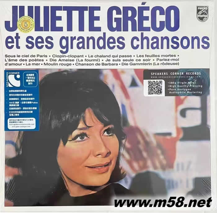 法國(guó)女歌手 JULIETTE GRECO ET SES GRANDES CHANSONS 黑膠(m58.net) 法國(guó)傳奇女歌手JULIETTE GRECO演唱法國(guó)香頌歌曲,朱麗特是薩特、加繆、薩岡生前最欣賞的法國(guó)歌手,是無(wú)數(shù)作家心目中的繆斯;她演唱的歌曲被稱(chēng)為“自由的百科全書(shū)”,被視為法國(guó)香頌的另一種解釋。180克黑膠。