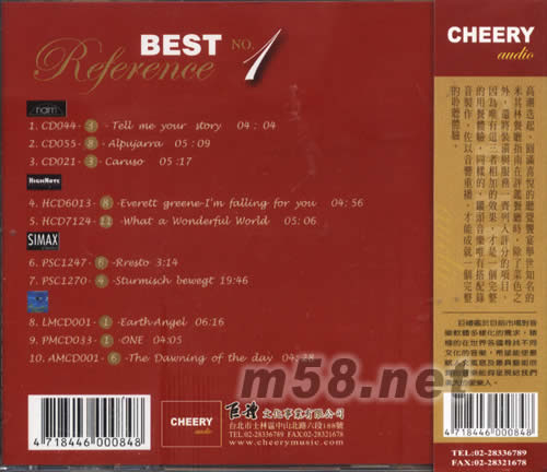 精選參考錄音1BEST REFERENCE NO 1(m58.net) 本片是由巨文化代理產品中精挑細徒勞出來的錄音合輯,不但內容氣象萬千,包括了古典、爵士與新世紀等風格,更配合了極高水準的錄音。在高級音響上播放,絕對可以讓音樂迷得到一個高潮迭起、圓滿喜悅的聽覺餐宴。 高潮迭起,圓滿喜悅的聽覺食宴舉世知名的米其林餐廳指南在評監餐廳時,除了菜色之外,還將裝潢與服務一齊列入評分的項目,因為唯有這三者相加的效果,才是一個完整的用餐體驗。同樣的,罐頭音樂唯有搭配錄音制作、佐以音響重播,才能成就一個完整的聆聽體驗。