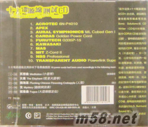 A Comparison Of Ten Power Cords十大電源線測試CD專輯背面圖片