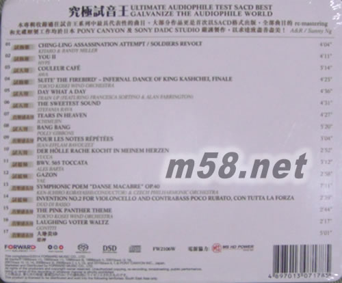 1. Ching-ling Assassination Attempt / Soldiers Revolt 演奏: Kitaro & Randy Miller 2. You II 演奏: HYPS 3. Couleur café 主唱: AWA 4. Suite ’The Firebird’ ~ Infernal Dance of King Kashchei, Finale 演奏: Tokyo Kosei Wind Orchestra 5. Day What A Day 主唱: rain Up (Featuring Francesca Sortino & Alan Farrington) 6. The Sweetest Sound 主唱: Stefania Rava 7. Tears in Heaven 演奏: ICHIMUJIN 8. Bang Bang 主唱: Polly Gibbons 9. Pour Les Notes Répétées 演奏: Jean-Efflam Bavouzet 10. Der h?lle rache kocht in meinem herzen 主唱: YUCCA 11. BWV. 565 Toccata 演奏: Ales Barta 12. Gazon 主唱: Yae 13. Symphonic Poem "Danse macabre" Op.40 演奏: Ken-ICHIRO Kobayashi(Conductor) CZECH PHILHARMONIC ORCHESTRA 14. Invention No.2 for Violoncello and Contrabass Poco Rubato, con tutta la forza 演奏: DUO DI BASSO 15. The Pink Panther Theme 演奏: Tokyo Kosei Wind Orchestra 16. Laughing Voter Waltz 演奏: Gontiti 17. 大地炎ゆ 演奏: 姫神
