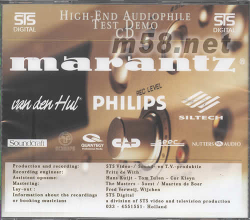 監(jiān)聽王終極示范級測試天碟 第三輯(m58.net) 請點看產(chǎn)品正、背面大圖 STS DIGITAL測試天碟系列--是你家中音響的最佳良伴(榮獲歐注洲各大發(fā)燒音響硬件商協(xié)助錄制及指定為標準測試利器)荷蘭權(quán)威發(fā)燒音樂制品公司STS DIGITAL抱著一個單純的愿望與宗旨,就是向每一位音樂愛好者及音響監(jiān)聽專家,承諾制作一系列極級發(fā)燒錄音產(chǎn)品,在音響重播系統(tǒng)當中,發(fā)揮出無窮無盡的潛能力量,在音樂的傳真及結(jié)像度當中,釋放出無限的震撼和爆破力,樂器定位準確無誤,聲音清澈通透,而人類情感的深度刻劃,亦在歌手圓潤甜美的聲線中完全表露無遺