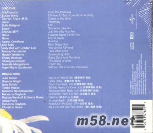 Disc 1 1. Over The Rainbow - Eva Cassidy 2. I'll Have To Say I Love You In A Song - Susan Wong 3. Colours Of The Wind - Freya Lin 4. Yesterday - Jiafei 5. Life - Sofia Kallgren 6. Someone Like You - Sissel 7. Just The Way You Are - Shunza 8. I Wanna Make It With You - Olivia 9. So Far Away - Noon 10. So Nice - Ayako Kawahara 11. Both Sides Now - Ann Sally 12. You've Got A Friend - Judy Hall with Jordan Lee 13. Time After Time - Alemay Fernandez 14. Scarborough Fair - Hayley Westenra 15. Rainy Days And Mondays - Emmy Rossum 16. The Water Is Wide - Strengemusikken 17. Lovin' You - Marcela Mangabeira 18. Will You Still Love Me Tomorrow - Inger Marie Gundersen Disc 2 1. You're A Part Of Me - Julie Simon 2. Baby Baby - Saeeda Wright 3. Form The Heart - Isela Sotelo 4. Tell My Heart It's Over - Terrell Moses 5. Shoulda Been Baby - Natasha Neuschwander 6. Someone There For Me - Rebacca Blaylock 7. Destiny - Robbie Wyckoff & Deena Russo 8. In Love Again - Anika Paris 9. Knock On My Door - Rebacca Blaylock 10. My Love Will Get You Home - Christine Glass